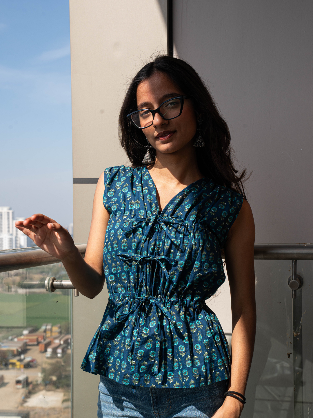 A blue bow tie top, layer it with a tank top or just wear it like that for the perfect brunch look.