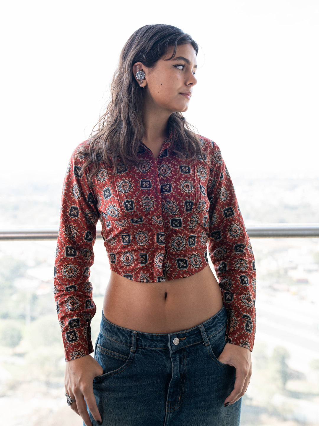 Laal gulaal - our corset style, cropped shirt in a ajrakh print for your indo-western days.